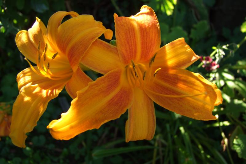 Hier brauche ich mal Hilfe.Es ist eine alte Sorte,könnte es Rajah sein?Sie ist nicht so hoch wie Jean und noch etwas kleinblütiger und hat orangerote Sommersprossen.Sie blüht noch im tiefstem Schatten.