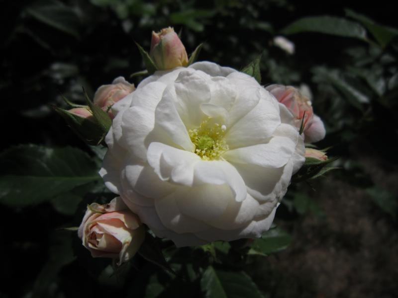 Zeigt die sich nochmals von Ihrer besten Seite, damit Du sie nicht in Deiner mainfränkischen Steppe verdursten lässt?Ein Traumbild!!!Der letzte Schub Blüten von Bouquet parfait war in der Sonne vertrocknet, aber sie gibt nicht auf