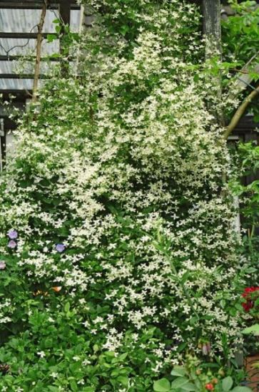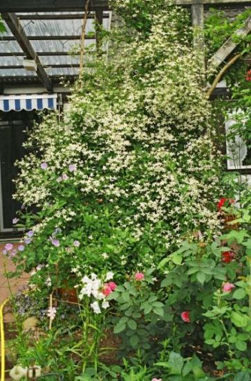 Cydora,"Little Nell" ist nicht großblütig und bietet mit ihrer hellen Farbe keinen Kontrast. Ich würde zumindest eine Clematis auswählen, die sich durch eine kräftige Farbe von dieser Unzahl an kleinen Blüten abhebt.LGChristiane