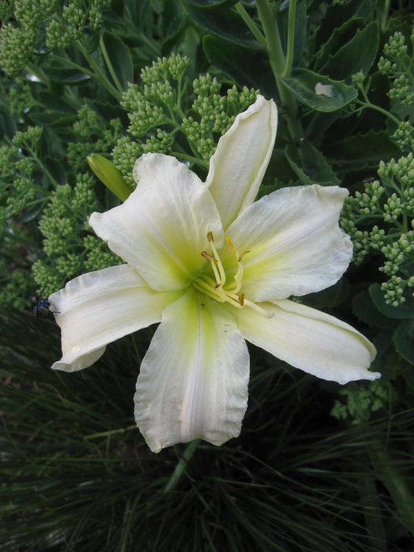 Ja,jetzt gegen Saisonende mögen wir die bescheidenen Blassen. ;)Suzy Creamcheese war dieses Jahr etwas beleidigt,weil ich sie gefleddert und versetzt hatte.Sie ist dieses Jahr sehr niedrig geblieben.das hier ist ihre erste Blüte überhaupt.Suddenly Snow ist sehr schön!!
