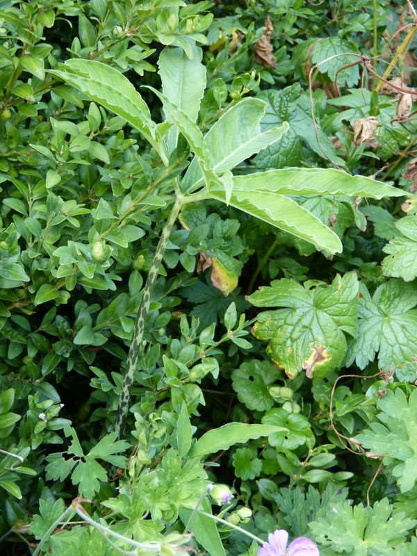 das sagt auch: https://commons.wikimedia.org/wiki/File:Typhonium_venosum_004.jpgKäme Lonicera nitida einfach so angeflogen? Hab davon nichts im Garten.Erinnert mich eher an ein Typhonium venosum.