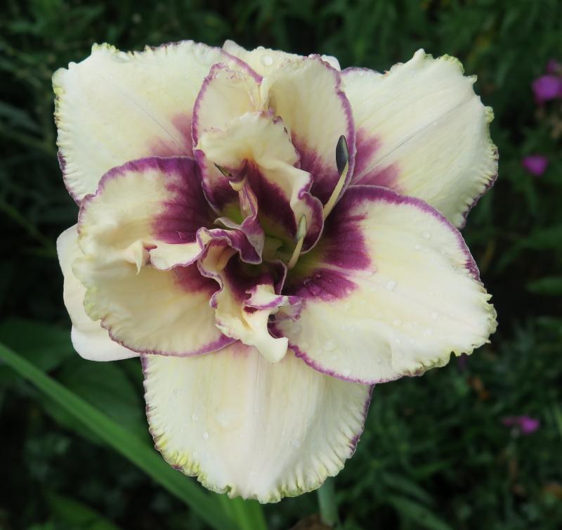 ... hier öffnen sich auch die allerletzten Blüten an 'Peggy Jeffcoat', die wirklich in diesem Sommer perfekte 'Hose in Hose'-Blüten zeigte. Aber auch andere gefüllte Joiner-Züchtungen wie 'Land of Cotton' oder 'Dublin Elaine' kamen gut mit der Hitze zurecht. Am Wochenende sah ich im Zweitgarten noch eine Blüte an der etwas selteneren 'Madge Cayse', die hier im Hausgarten farblich nicht so ins Konzept passt. (Leider keine Kamera dabei, deshalb sorry für die Bildqualität)