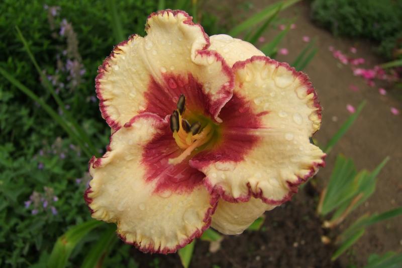 Blueberry Breakfast blüht nun schon die gesamte Saison.Sie ist hier wirklich recht blau und außerdem als Vorpflanze im Beet zu gebrauchen.da sie sehr niedrig ist.
