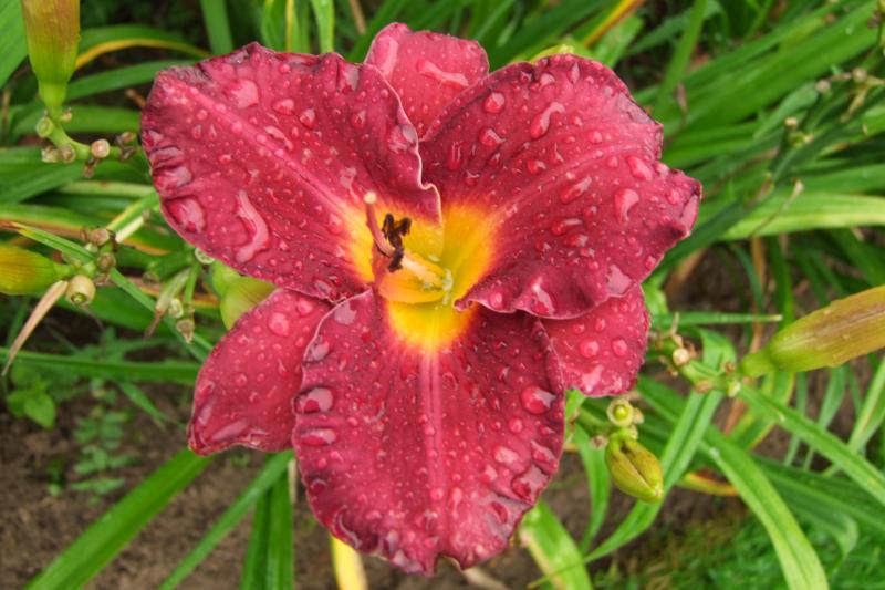 Ja,einige der Roten bekommen auch Regenflecken und sehen selten sauber aus.Hier eine von gestern abend,nacheinigen Tagen Regen.Watchyl Dreaming Purple zeigt sich als recht stabil.