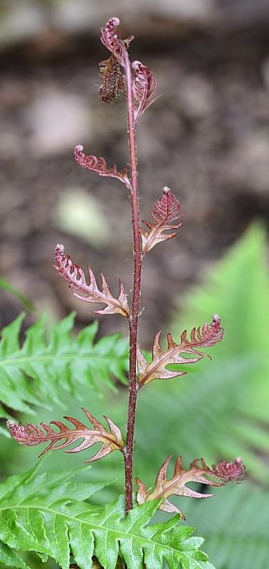 Wegen des Winds nicht ganz scharf, sei's drum: Der eutrieb von Woodwardia unigemmata.