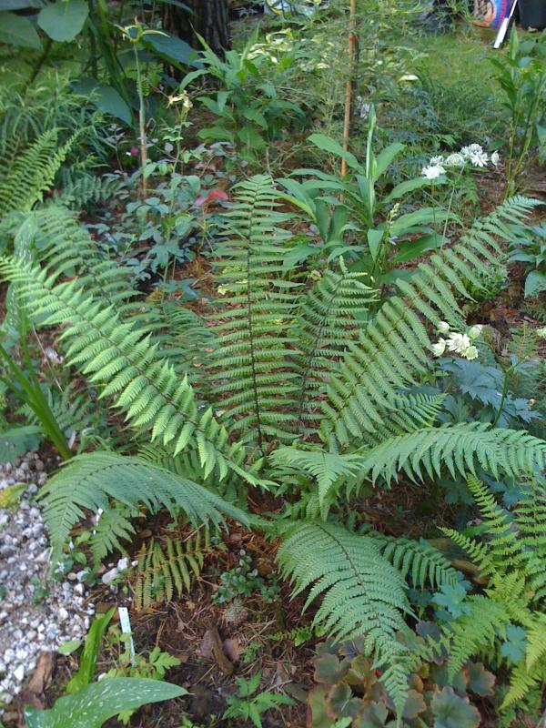 Ich fürchte, fototechnisch kann man es nur erahnen. Athyrium iseanum 'Cristatum' macht sich im jetzt 3. (?) Standjahr richtig gut und fängt an zu wuscheln.