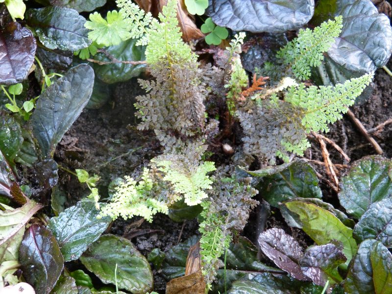 Dann habe ich mir Athyrium filix-femina 'Frizelliae' nochmal genauer angesehen. Er hat jede Menge Wedel. Ob es mehrere Pflanzen sind, kann ich nicht feststellen. Die unförmigen Wedel beginnen typisch, machen dann im oberen Bereich einzelne Ausreißer...