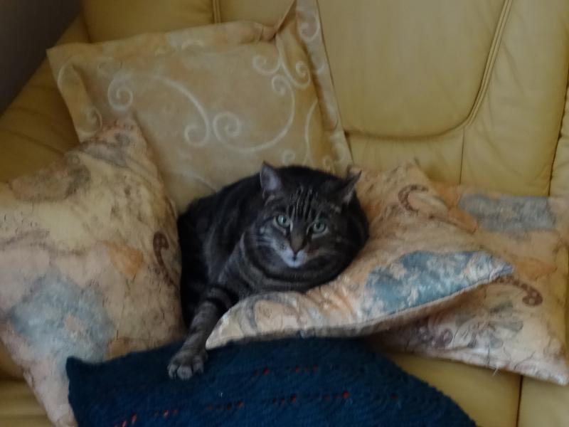 Der Kater tut mir auch leid. Ich behaupte sogar, der sucht schon eine geraume Weile ein neues Zuhause. Aber mit Liese, ich glaube nicht. Und zum Kastrieren, wenn es dazu käme, ist der bestimmt schon recht alt. Lieschen sitzt jetzt immer oben auf der Eingangsstufe wie Cerberus persönlich. Die Wache nimmt sie sehr ernst. Dafür gibt sie dann drinnen die Prinzessin auf der Erbse, siehe unten.
