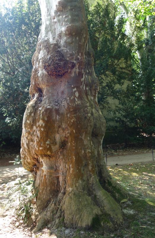 Im Park von Sancoussi sind mir besonders einige Baumstämme aufgefallen.Vielleicht kann jemand die Baumarten ergänzen?Platane?