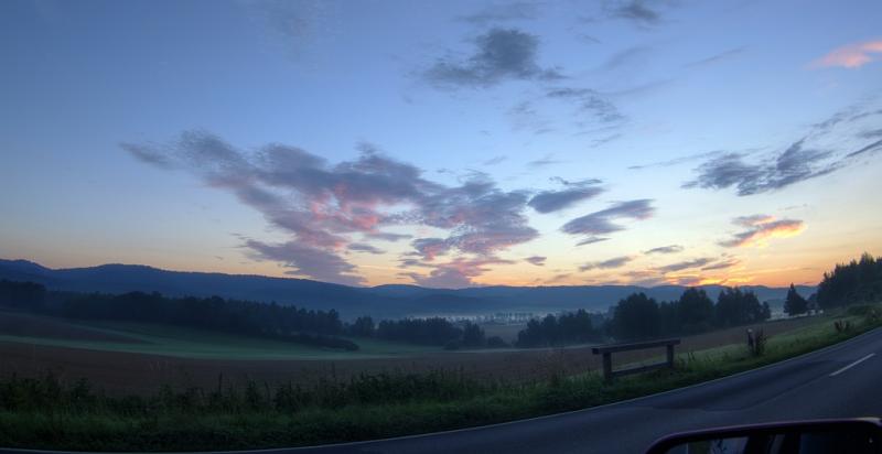 So schöne Farben! In dem Fall würde ich komplett auf die Landschft verzichten. Hab grad ein Papier davorgehalten, sieht dann auf den ersten Blick aus, als wäre die untere, dunkle Wolkenschicht Meer/Seeund in der Totalen...