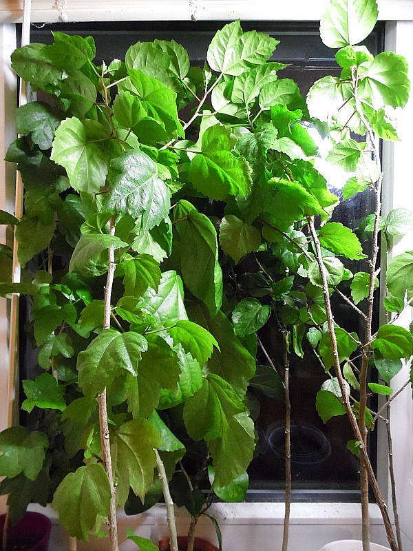 Heute habe ich den schizopetalus in Form gebracht und Stecklinge gemacht. Derweil blüht GGs Hibiskus unermüdlich.