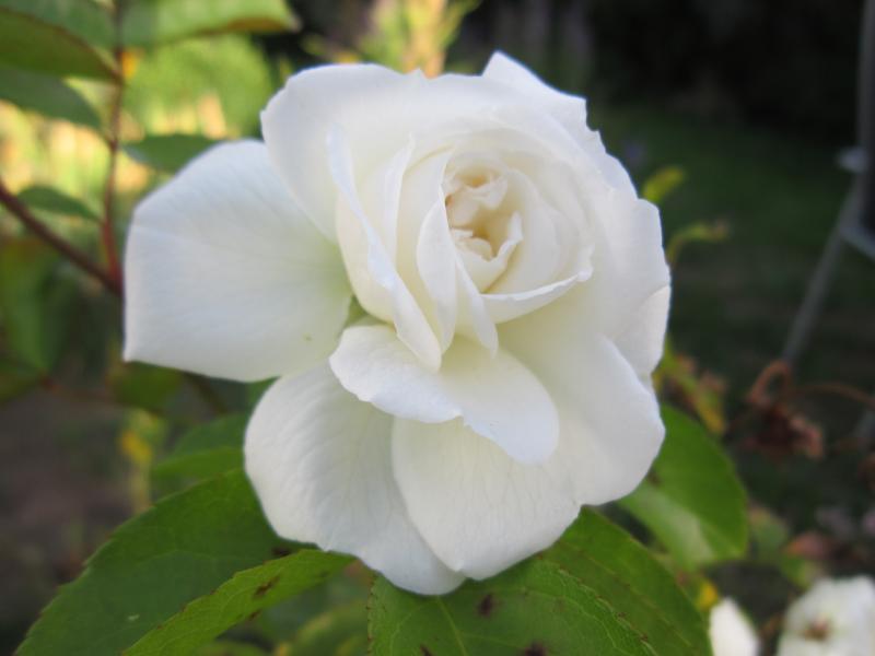 Meine frisch gepflanzte drückt sich noch um die Zweitblüte. Andere hingegen nicht:'Darlows Enigma' - Blüte und Neuaustrieb.