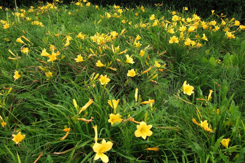 So allmählich machen wir Norddeutschen es den Amerikanern nach und verwenden Hemerocallis im öffentlichem Grün. :)Heute sah ich diese Verkehrsinsel,bepflanzt mit Rudbeckia und...Taglilie Super Stella.Erstmal von Weitem.