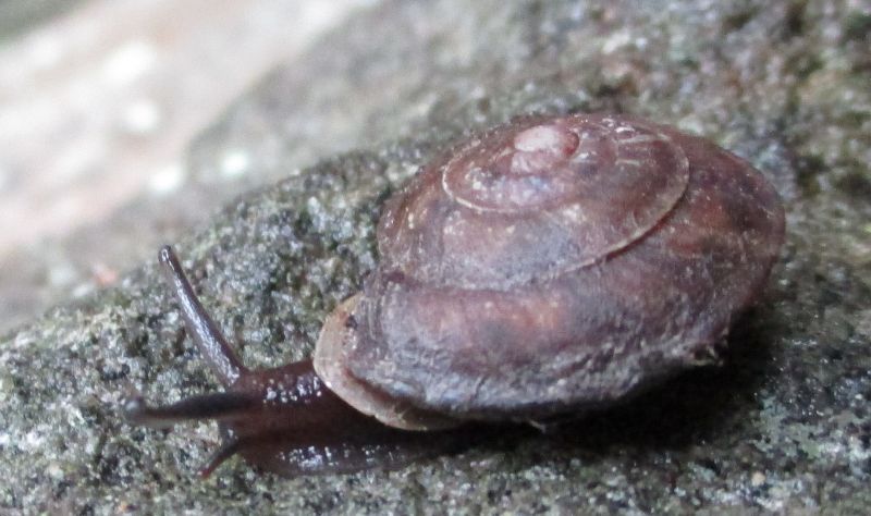 Der "Fundort" ist etwas nordöstlich von Stuttgart, im Ludwigsburger Neckartal. Sie trieb sich an einer durchs Gießen immer etwas feuchten Umgebung rum. Ich habe mehrere Bilder von ihr, aber alle bis auf das gezeigte unscharf, leider auch die auf denen das Haus besser zu sehen ist. Es ist nicht bei mir aufgenommen, wenn ich dort wieder hinkomme suche ich nach einer und schau sie mir näher an. Der Durchmesser ist irgendwo zwischen einem und anderthalb Zentimetern.Diese Art ist wahrscheinlich heimisch (?), in letzter Zeit meine ich aber mehrere verschiedene Gehäuseschnecken zu beobachten, die ich früher nie gesehen habe. Klimawandel, Eingeschleppte oder doch Einbildung? Wenn mir eine über den Weg läuft, mache ich Bilder...