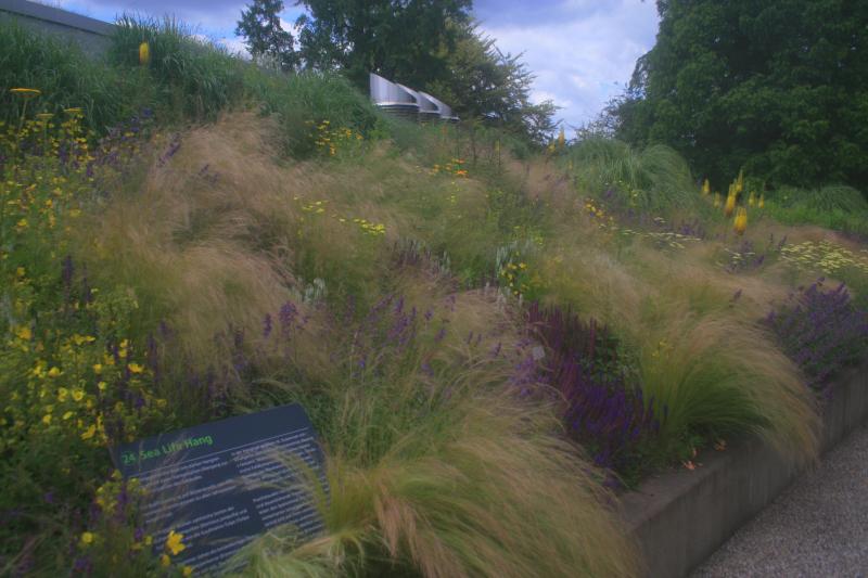 Ich bin ja ein Fan von Stipa tenuissima und habe es an verschiedenen Stellen hier im Garten angepflanzt. Laut Literatur sollte der Standort sonnig und trocken sein, aber in meinem Felssteppenbeet mickert sie ziemlich vor sich hin. Sehr üppig wächst sie dagegen in einem gemischten Staudenbeet, das gut mit Kompost versorgt ist und regelmäßig gewässert wird.Ich habe hier mal ein Bild aus dem Berggarten in Hannover rausgesucht. Hier ist S. tenuissima flächig gepflanzt, und ich finde - es sieht grandios aus. Gerade wenn das das Gras sich im Wind bewegt ... Ob eine Monokultur dieses Grases auch noch gut aussieht, kann ich nicht beurteilen. Aber in Hannover hat man ja sehr elegante Pflanzpartner gefunden. Eine schöne Mischpflanzung - und das Gras spielt trotzdem die Hauptrolle.