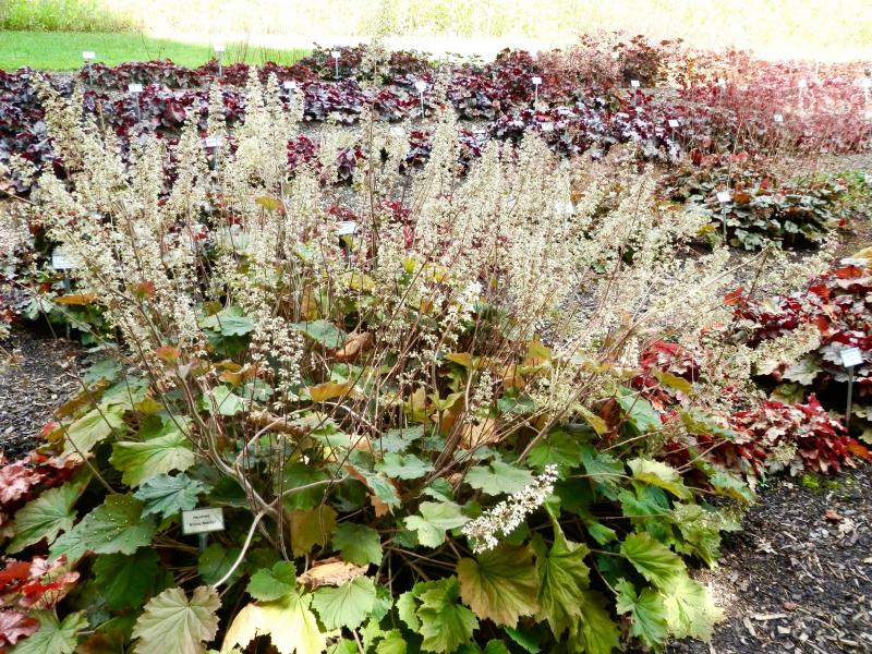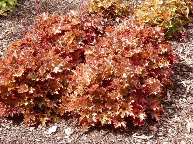 Von den grüneren wird Heuchera 'Bronze Beauty' ziemlich hoch und hat reichlich Blüten: