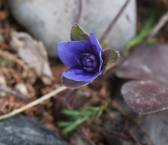Ich weiß auch nicht, was hier los ist. Immer mehr Hepatica zeigen einzelne Blüten. Zuerst Hepatica transsilvanica, dann einige nobilis, jetzt kommt auch noch H. henryi dazu. Ob die eine kurz Kaltwetter Periode Anfang Oktober für den Winter gehalten haben und das milde Weter jetzt für Frühling?