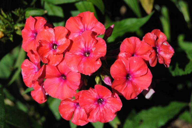 Es ist einfach unglaublich, was die Witterung mit der Farbe der Phloxblüten anstellen kann! Hier war es 2 Wochen lang stürmisch, regnerisch und nachts recht kalt, auch gab es Hagel. Der Steckling auf dem Foto ist von "Uralskie Skazy". Wenn ich es nicht definitiv wüßte, würde ich es selber nicht glauben.