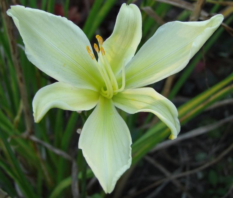 Nach 10 Tagen Abwesenheit und mittlerweile "frühwinterlichen" Nachttemperaturen von geschlagenen 3° Celsius stelle ich fest: Die Taglilien geben sich immer noch nicht geschlagen! Zwar dauert es etwas mit dem Öffnen, aber dann ist doch noch die ein oder andere schöne Blüte dabei.Zum Beispiel an Lacy Doily, - Foto von heute.