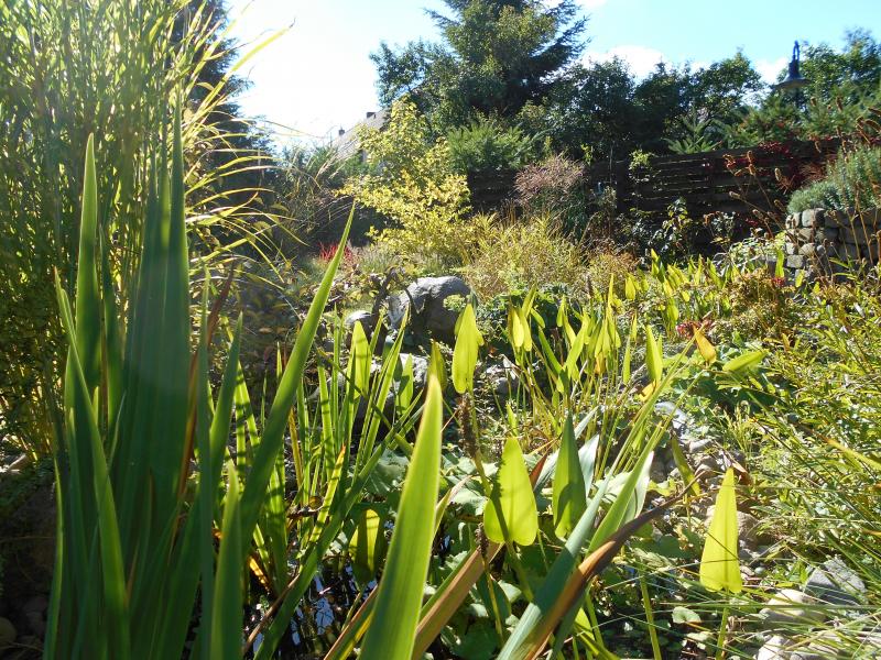Ich möchte euch ein paar Bilder unseres Bächleins zeigen. Der Bach wurde im Sommer 2012 von meinem GG gebaut und hat mittlerweile schon mächtig Zuwachs gemacht.2012 und 2013 sah der 30m lange Bach schrecklich aus (viel zu viel Steine) - mittlerweile sieht man von den Steinen nicht mehr viel.Er mündet in unserem dieses Jahr gebauten Teich.Selbiger kommt ganz ohne Technik aus. Der Bach mit seinen vielen Pflanzen hilft tüchtig bei der Reinigung. Und wälzt das Wasser auch ausreichend um.