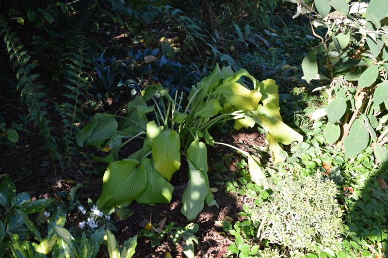 Ich hab jetzt mal im "Gehölzgarten" "aufgerüstet", viele Farne und ich hab ein paar meiner wenigen Hostas geteilt.Eine wahrscheinlich 'Sum and Substance' war besonders ergiebig