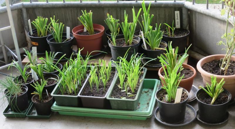 Meine Hems im Wartestand auf dem Balkon sind vor 12 Tagen beim Friseur gewesen. Ich finde es immer spannend, welche danach noch wieder weiter wachsen, auch in den Sämlingskästen. Das sind mit Sicherheit keine völlig einziehenden (dead dormants). Eine solche habe ich offenbar dieses Jahr bei der Versteigerung gewonnen. Eene Mene Muh von Reinermann hat gut geblüht im Topf, auch freudig Samen angesetzt. Als diese reif waren, zog ich die vergilbten Blätter raus und jetzt ist überhaupt nichts mehr zu sehen. Bin gespannt aufs Frühjehr.