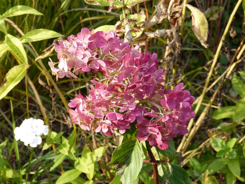 Bei 'Kyushu' wundert mich das etwas. ???Ich kenne sie eigentlich nur reinweiß ohne nennenswerte Herbstfärbung der Blütenstände. Von "weiß" recht schnell zu "braun"... so ist sie hier. Auch die Blütenstände sind mir zu kompakt rundlich und die Einzelblüten zu klein.Meine Hydrangea werden immer farbiger und laufen im Herbstgewand nochmals zu Hochform auf.'Romance'