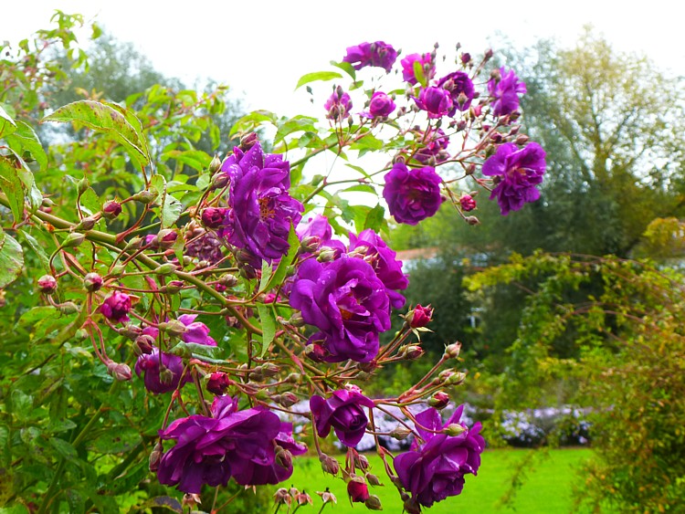 Schöne Kombi machen die beiden Strauchrosen Darlows Enigma und Bouquet Parfait, erstere allerdings mit Abstand sehr viel größer, dabei ist auch das perfekte Bouquet derzeit bei 1,5 x 1,5 Meter.