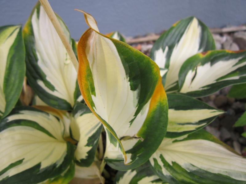 Einige Sorten stehen wirklich völlig unbeeindruckt da und schieben sogar noch Blütenstängel wie hier die Hosta 'Best of Twenty'. Sie ist noch relativ neu hier im Garten und ich mag die Farbe der Blatt-und Blütenstiele sehr gerne.