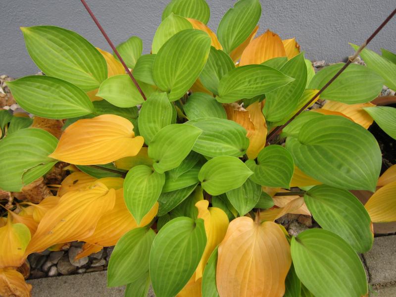 Einige Sorten stehen wirklich völlig unbeeindruckt da und schieben sogar noch Blütenstängel wie hier die Hosta 'Best of Twenty'. Sie ist noch relativ neu hier im Garten und ich mag die Farbe der Blatt-und Blütenstiele sehr gerne.