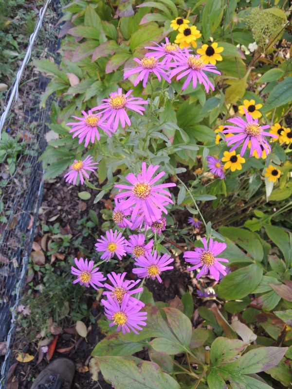 die ist hier besonders blüh-unwillig ;DVeilchenkönigin mag ich gern, aber die ist fast durch. Diese hier ist ähnlich, heißt amellus 'Sternkugel'Wirklich eine sehr besondere Aster!