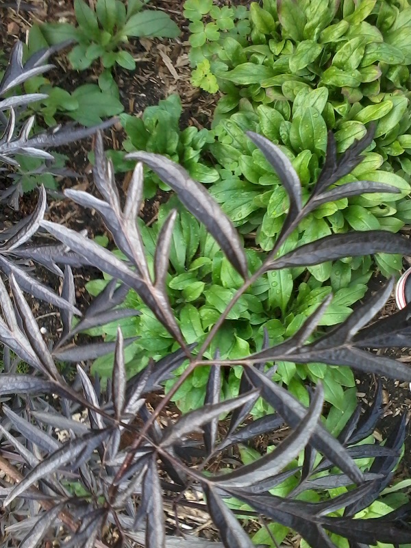 Hier die Blätter vom Black Lace in Großaufnahme, mir gefällt das zarte geschlitzte Laub gut.