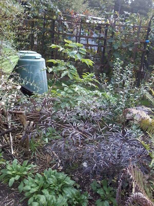 Habe heute Bilder von meinem Black Lace gemacht, im Hintergrund ein gewöhnlicher Sambucus nigra, beide vorigen Herbst gepflanzt und in diesem trockenen Sommer mächtig gewachsen. Sie stehen an einer Stelle, wo ich zuvor eine Forsythie und einen Philadelphus hatte, der Untergrund ist humos (jahrelang Laub drauf verrottet), wie überall hier eher sandig. Lehm ist ein Fremdwort hier ;DUnd Wasser hat der Black Lace diesen Sommer nur bekommen, wenn er die Blätter hängen ließ. Der gewöhnliche Holunder überhaupt nicht, das ist ja mehr oder weniger Unkraut, das soll gefälligst selbst für sich sorgen. Trotzdem musste ich letzterem im Herbst die Spitze kappen, weil er mir zu weit nach rechts wuchs.