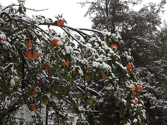 Das Morgenrot vom 3.Oktober ist wunderschön herbstfarbig.Heute überwiegen die Winterfarben. Nicht schön, aber selten, besonders im Oktober.
