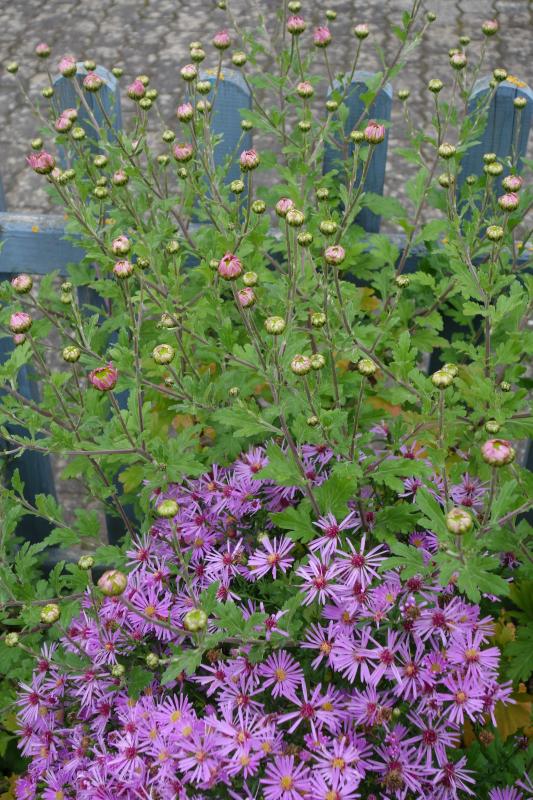 Vielleicht hau ich komplett daneben, aber liegt den der besondere Wert der Chrysanthemen nicht gerade in der sehr späten Blütezeit? Und abgesehen davon, dass sie die Trübe etwas hinauszögern, finde ich die Kombination mit anderen Herbstblühern, ich sag jetzt mal schwierig.Oder andersrum gesagt: Astern zusammen mit (frühblühenden) Chrysanthemen, womöglich noch mit Anemonen (die auch nicht immer wissen, dass sie einen anderen Lebensbereich haben) tun meinen (!...wenngleich nicht alle seiner Chrysanthemen-Selektionen Frühblüher sind. Ich habe letztes Jahr einen ganzen Schwung mitgenommen, sie stehen unter Beobachtung. Bis jetzt ist noch kaum eine aufgeblüht.