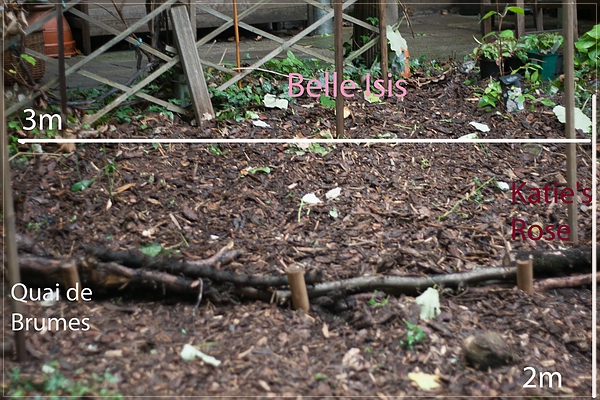 Herzlichen Dank an Rorobonn fürs Verschieben ins Atelier! :DAlso: Die Rosen stehen fest.Hinten im Beet, mit Platz zum Ausbreiten: Belle Isis.Vorne links: Quai de BrumesVorne rechts: Katie's Rose, schräg daneben Mildred ScheelJetzt geht es also an die Planung der Stauden.