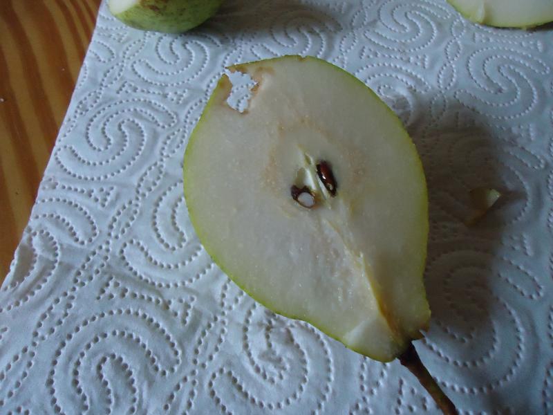 tja, die Frage ist....hat der Baum die Früchte verloren und hat sie jemand geerntet? Es lagen etliche gelbe Früchte unter dem Baum, die matschig waren und angefressen. Davon hab ich keine mitgenommen, weil die nur noch "Brei" waren. Diese Birne war die einzige, die auf dem Boden lag und halbwegs unversehrt war :-\Ich denk, da war jemand beim Ernten sehr sehr fleißig....wie immer sie daran gekommen sein mögen