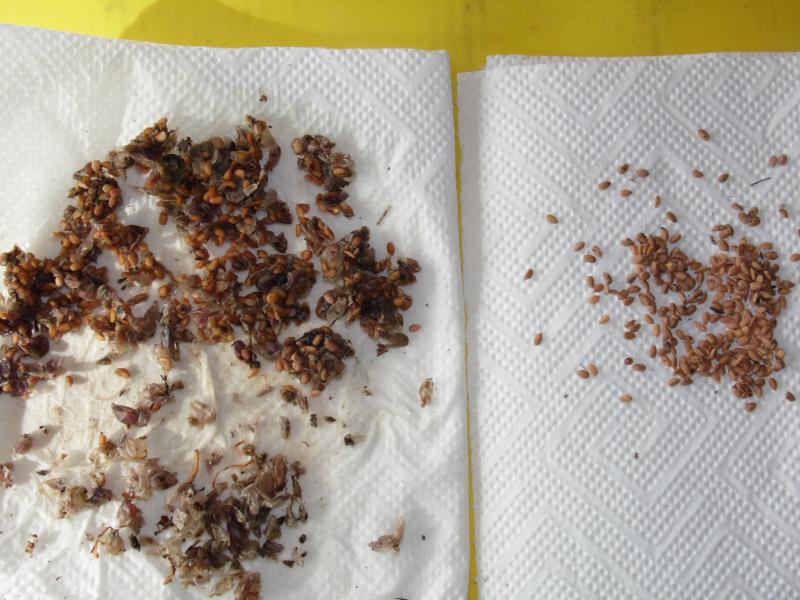 Nicht im Garten, sondern dafür: Neues Saatgut reinigen.Samen von Sambucus nigra 'Black Lace'