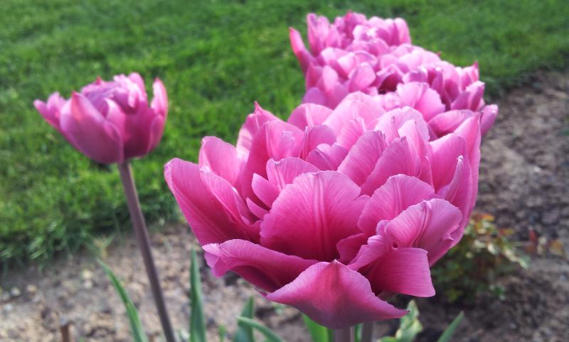 Leider nein, obwohl sie durchaus meinen Farbgeschmack treffen würde. Würde mich auch interessieren, wie sie "in original" ist.Die erinnern mich übrigens sehr an "Blue Wow". Eine der wenigen gefüllten Tulpen hier. Wobei diese mal gerne mehr ins "Pink" abdriften.Bei den 200 qm ist natürlich auch der Bereich seitlich am Haus dabei, der nur aus Rasen besteht. Nicht, dass ich hier noch als Großgrundbesitzer gelte