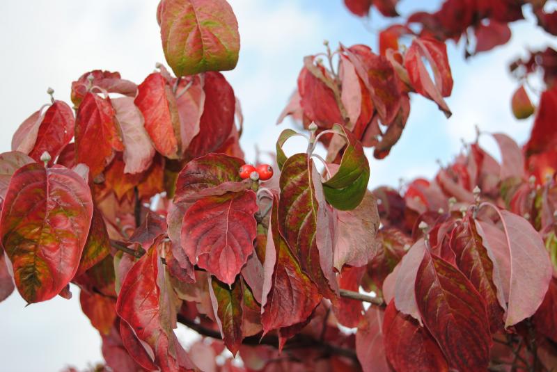 hier in der nachbarschaft färbt auch ein cornus soooo schön dass ich mir einen aus ungarn mitgenommen habe,nur wegen der herbstfärbung