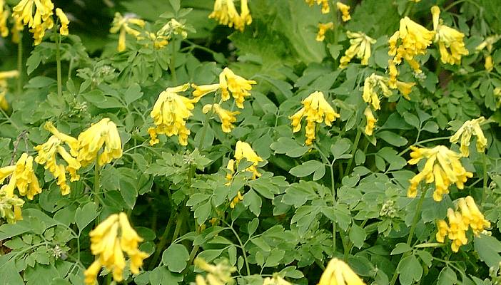 nein, kein corydalis lutea...hier ein foto aus meinem garten. blüht erst später im jahr + das blatt ist ganz anders!tippe mehr in richtung dicentra...norbert