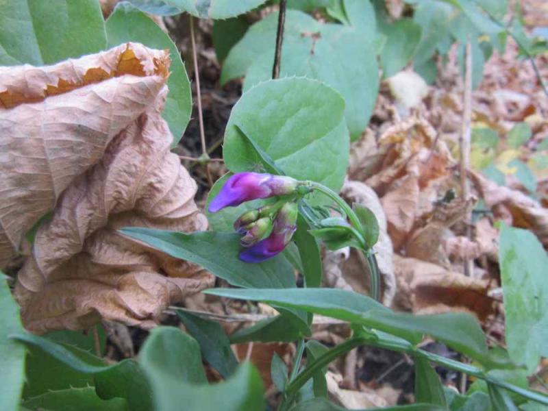 Ein noch etwas orientierungsloser junger Platterbsensämling.