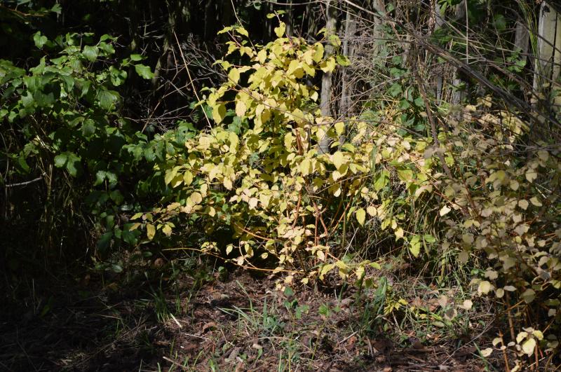 Hier nochmal ein Foto von näher, die Blätter sind fest dran und seit mindestens Mitte Juli so gefärbt: