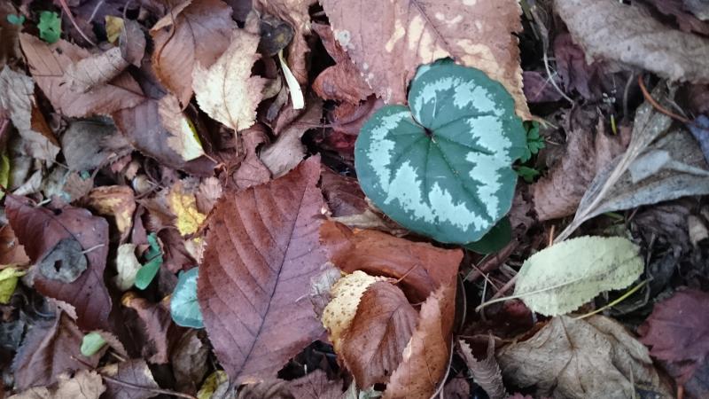 Die purpurascens ( oder doch wieder europaeum ? ) sind mit der Blüte durch . Aber es blühen einige der Hybriden von hederifolium und purpurascens , die Hybriden hederifolium x coum ssp caucasicum halten sich dieses Jahr zurück , im letzten Jahr haben sie im Herbst angefangen und im Frühjahr weiter geblüht .Das würde zumindest erklären, warum zwei von agarökonoms Pflanzen Cyclamen purpurascens sind und keine C. hederifolium, allerdings zweifle ich daran, ob Cyclamen ein ausgeprägten Ordnungssinn haben.Mittels Unordnung?