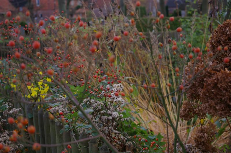 Wieder ein Einblick in meinen hinteren Garten: Die Molinia habe ich inzwischen abgeschnitten und die Blätter vom Eupatorium abgerebbelt.