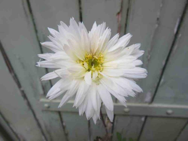 Folgend noch ein paar Bilder von zwischenzeitlich aufgeblühten Schleipfer-Sorten.Außerdem zeigen einige wenige Töpfe bisher nur etwas Farbe, ob sie es schaffen weiß ich noch nicht. Manche Sorte habe ich nicht fotografiert, da sie dieses Jahr eindeutig nicht repräsentativ daherkommt. Zuerst `Weiße Winteraster´, aus der ersten Gruppe seiner Züchtungen ("I. Hohe Sorten"). Die Einschnürung an der Blüte oben ist rein mechanisch zustande gekommen.