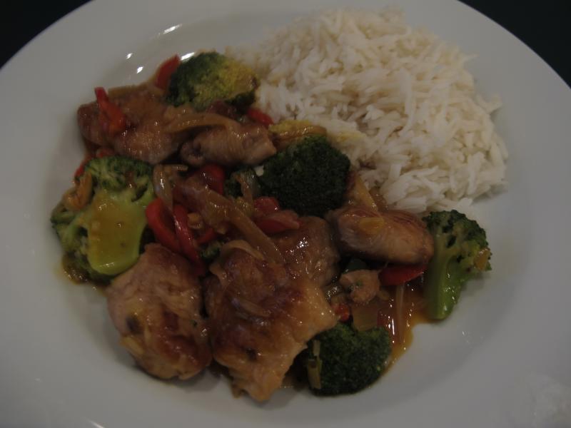 Bei uns brutzelt ein Gockel im Ofen, dazu gibt es Brokkoli (frisch aus dem Garten) und Reis