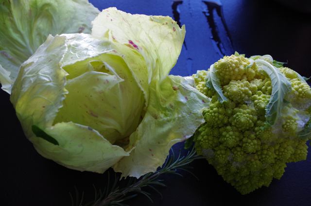 Wir können auch noch jeden Tag ernten. Heute hab ich Radiccio ubd den letzten Romanesco geerntet.