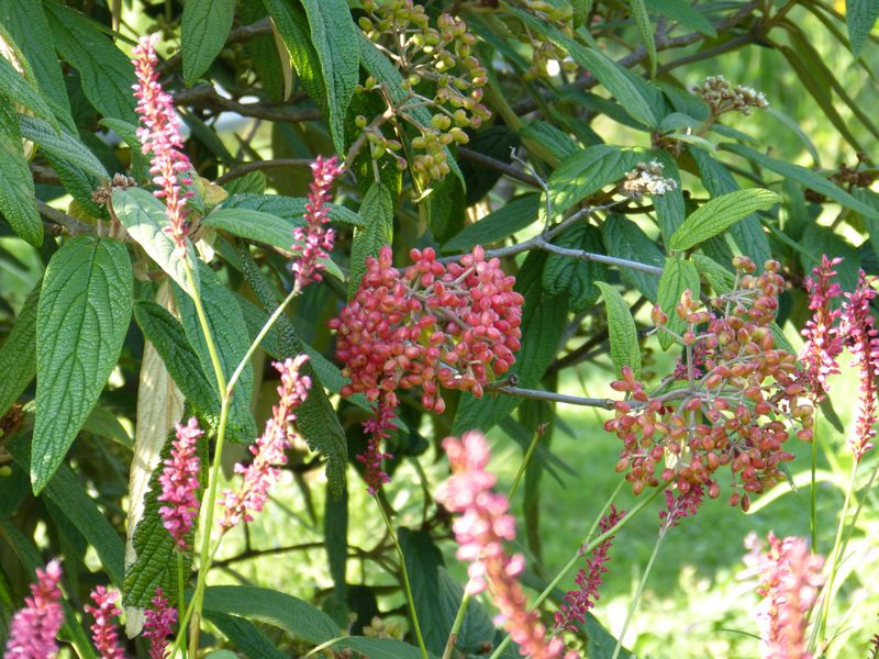 Und ich sprach letztens schon mit Danilo darüber. Das Laub ist durch die behaarte Unterseite zusätzlich interessant, Hauptblüte im Frühjahr, Nachblüte, wenn er reichen Fruchtbehang trägt und ich musste noch kein einziges Mal husten, egal ob ich darunter pflanzte, jätete, oder an ihm rumschnibbelte. Vielleicht gibt es unterschiedliche Klone?