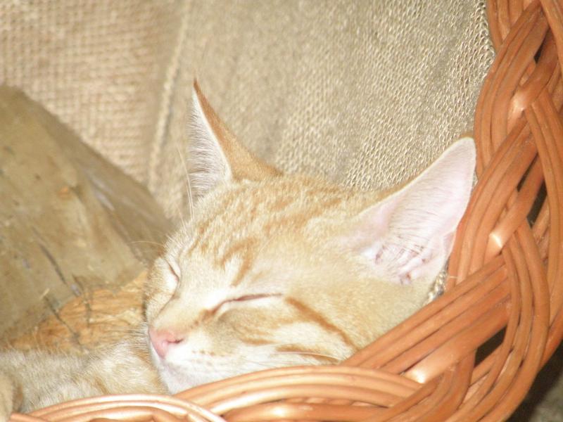 Mini liegt wieder in seinem Bettchen, nachdem er heute (weil es nicht regnete) ein bissle spazieren war.Kinder pennen und ich habe ein kleines Tillchen hier, das die Welt nicht mehr versteht... Er hat eine Praktik entwickelt und zerrt unten an der Küchentüre so lange bis die Türe aufspringt. Weil es mir jetzt reichte, dass ich ständig aufpassen muß, dass er nicht hinter mir herrennt wenn ich nach draussen gehe, habe ich jetzt einfach einen Messinghaken in den Türrahmen geschraubt und in die Türe dann das passende Gegenstück. Jetzt kann ich den Haken einfach einhängen und schon ist die Türe katzensicher.Das arme Tillchen probierte und probierte und jetzt ist er einfach fertig mit der Welt. Er kann das einfach nicht begreifen warum er bis jetzt die Türe einfach aufreissen konnte und jetzt geht nichts mehr.Nun bin ich gespannt wann er sich einen Hammer organisiert und die Türe einfach unten einschlägt *lach*